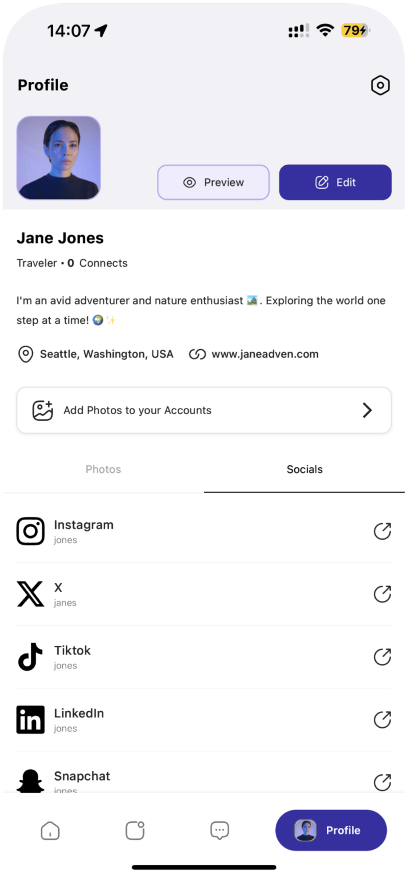 Streamlining User Interaction with Comprehensive Profile Management and Edit Profile Capabilities.