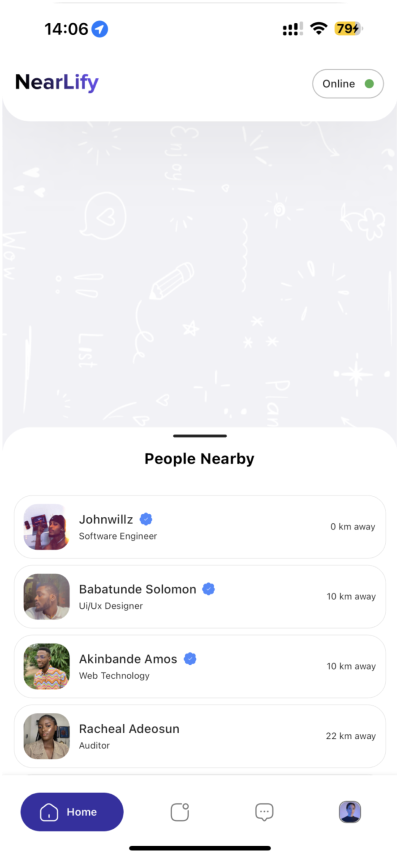As a UI/UX designer, I meticulously crafted intuitive interfaces and seamless user experiences within the Nearlify app, enabling discovering and connection with people nearby, fostering meaningful connections and interactions within their immediate physical surroundings.